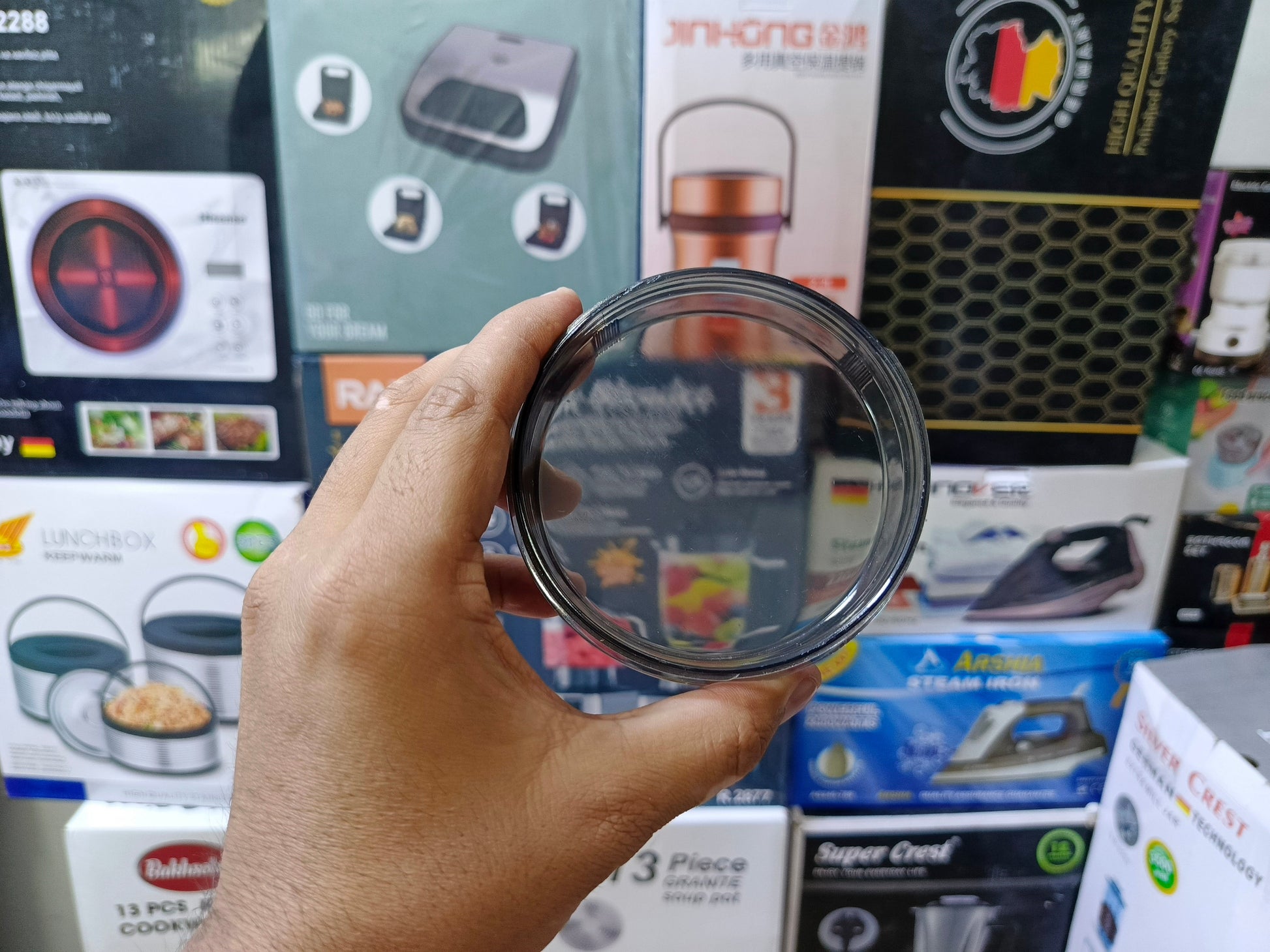 Transparent top lid, grinding process at glance;